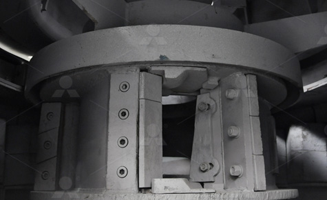 En entrant dans la turbine, la matière première est broyée directement par impact sur la plaque d’impact, puis accélérée et projetée. La matière première peut également être divisée en deux parties par la plaque de séparation. L’une tombe de tous côtés. L’autre pénètre dans la turbine, est accélérée, projetée et entre en collision avec la matière en chute, puis rebondit sur la plaque d’impact. La circulation se répète. Au fur et à mesure du broyage, de fines particules de matière forment progressivement un lit autour de la plaque d’impact, améliorant ainsi l’effet de broyage et protégeant la machine. Le sable artificiel souhaité descend finalement par la sortie.
